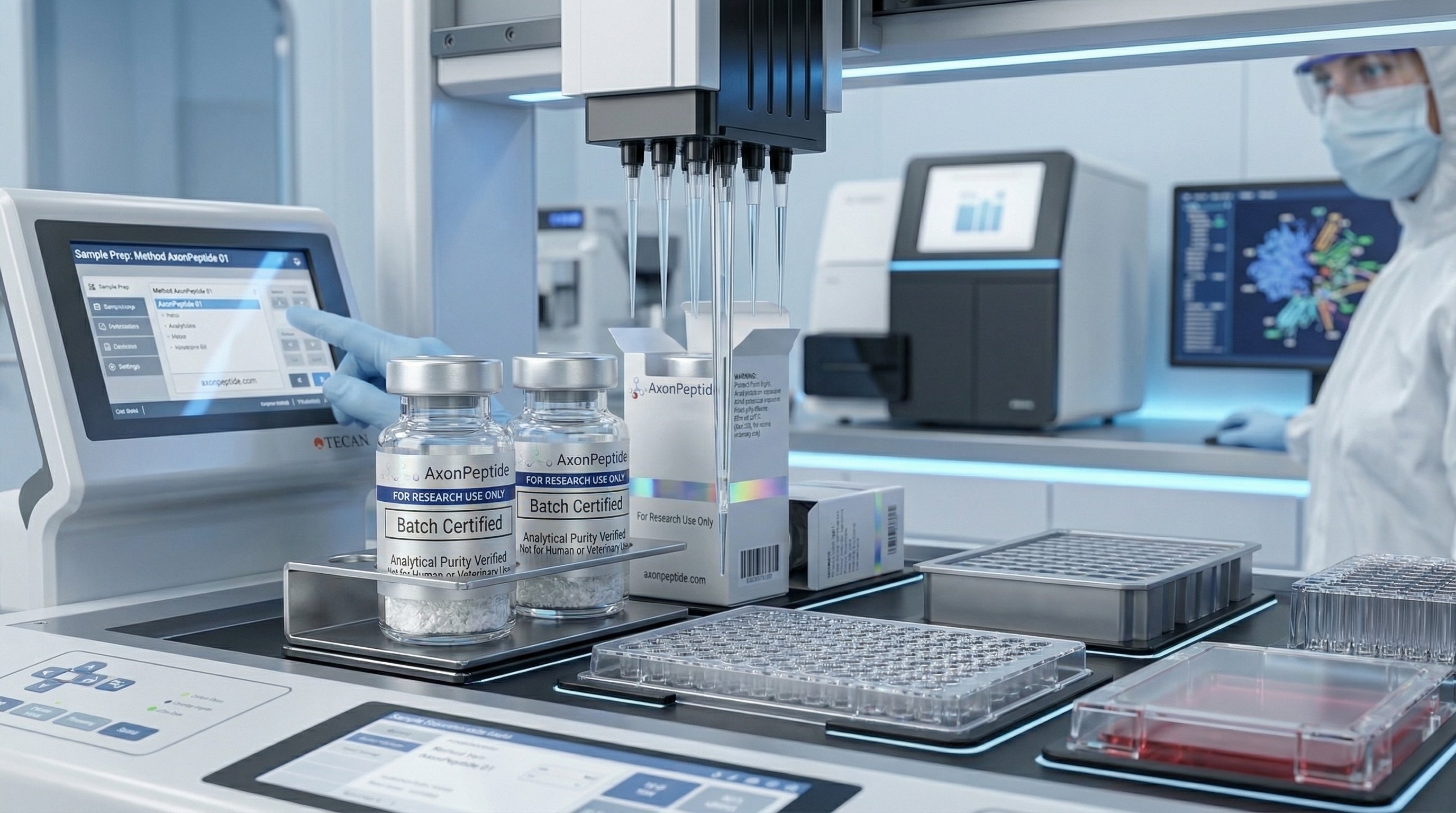 Axon distributes analytical reference materials and synthetic peptides exclusively for laboratory research use. Not for human or veterinary use. Axon does not compound, prescribe, or promote use outside of controlled research environments. All materials are handled in accordance with internal quality standards and applicable regulatory frameworks. Each lot is supported by analytical documentation and traceability records to ensure consistency and transparency in research applications.